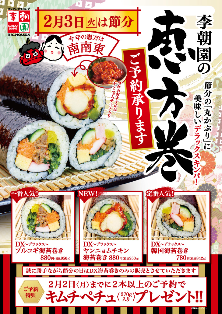 - 2026 李朝園恵方巻ご予約承り中!